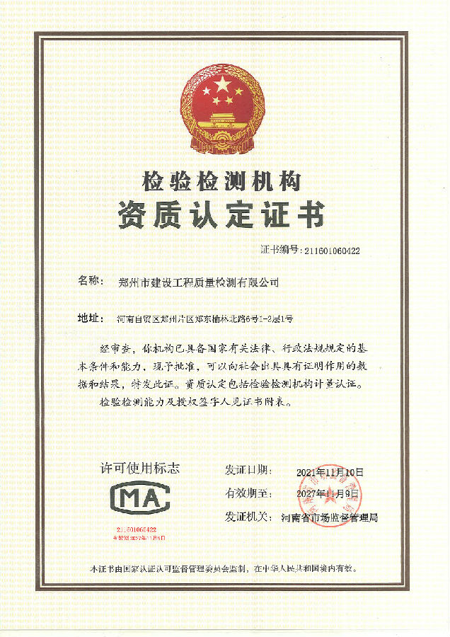 您好,歡迎來到鄭州市建設工程質(zhì)量檢測有限公司!